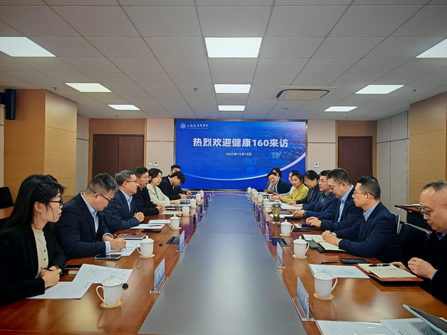 12月15日,国内领先的上市互联网医疗健康服务平台——健康160创始人兼CEO罗宁政携集团副总裁罗勇、人力资源部总监蔡喜梅、华东大区城市业务总经理徐磊等一行7人到访我校,校长吴韬、副校长吴晓晖出席会议,公利医院、周浦医院、党校办、发展规划处、教务处、产学合作处、科技处、校友办、护理与健康管理学院、医疗器械学院等附属单位、职能部门和二级学院负责人参加会议。会议由吴韬主持。
